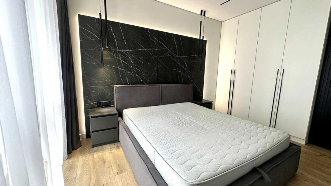акцентна мармурова стіна в спальні;