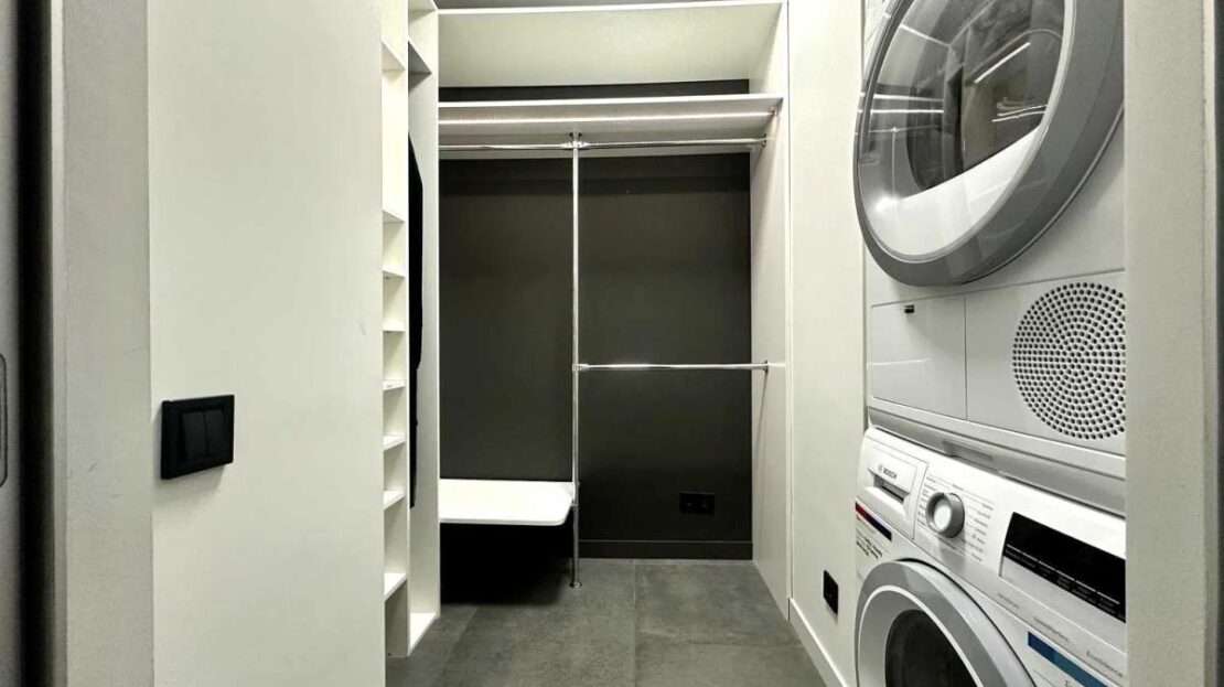 У квартирі встановлена якісна техніка провідних брендів: два телевізори Samsung, кондиціонери NC Clima, вся побутова техніка Bosch (включно з пральною та сушильною машинами, посудомийкою, духовкою та ін.). Індивідуальне газове опалення, тепла підлога у всіх зонах із плиткою. Відеоспостереження, закритий двір без автомобілів. Додатково можна купити паркомісце у підземному паркінгу (14,4 м²). Документи готові.