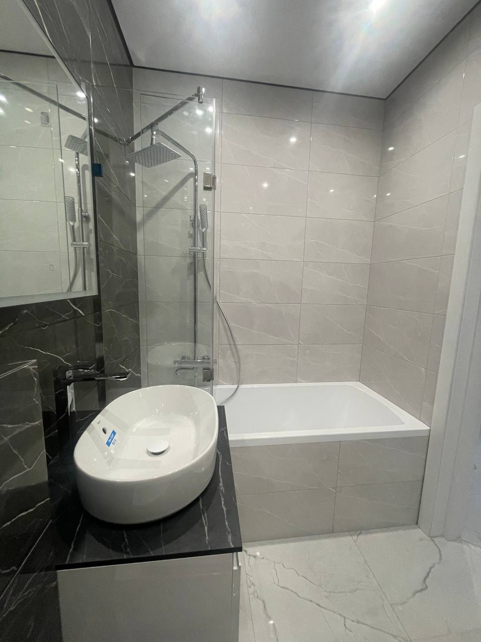 Дві кімнати та простора кухня з газовою плитою та панорамними вікнами. Одна кімната — спальня, друга — кабінет або зона відпочинку. Санвузол суміжний, ванна.