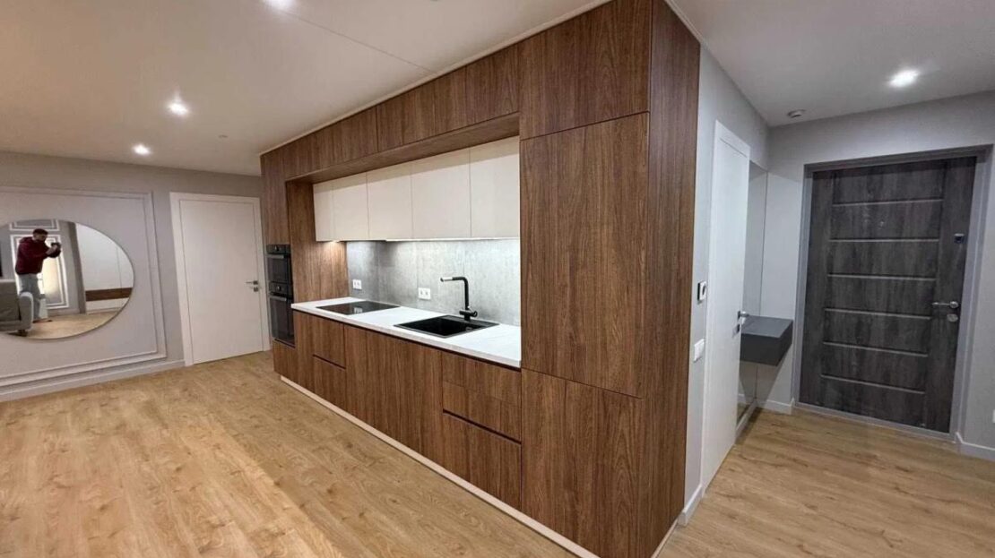 Перша здача, дизайнерський ремонт. Дві окремі спальні та простора кухня-студія. Є всі необхідні меблі та побутова техніка, кондиціонери, тепла підлога, швидкісний інтернет. Багато місця для зберігання, продумане планування. 8/13 пов.