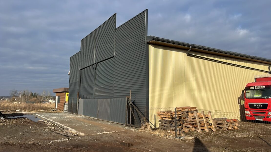 Складське приміщення у вигідній локації на першій лінії з хорошою транспортною доступністю. Загальна площа складу — 1000 м². Додатково павільйон/приміщення під офіс. Земельна ділянка — 15 соток.