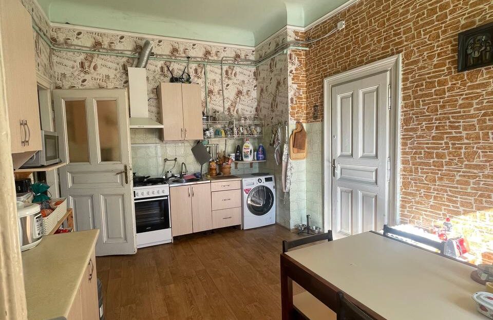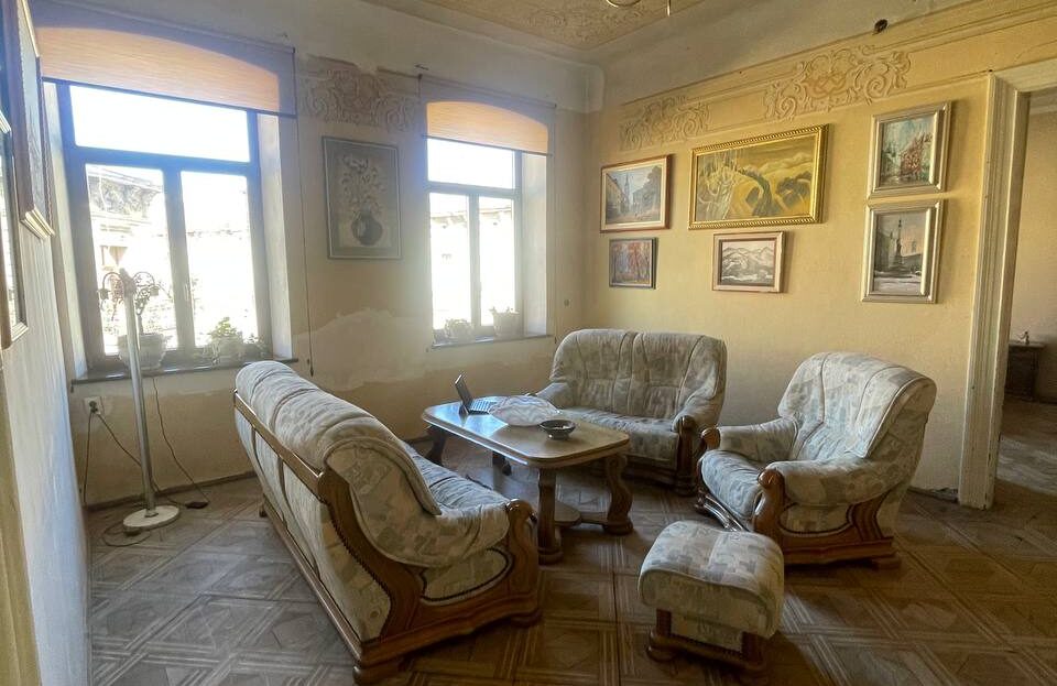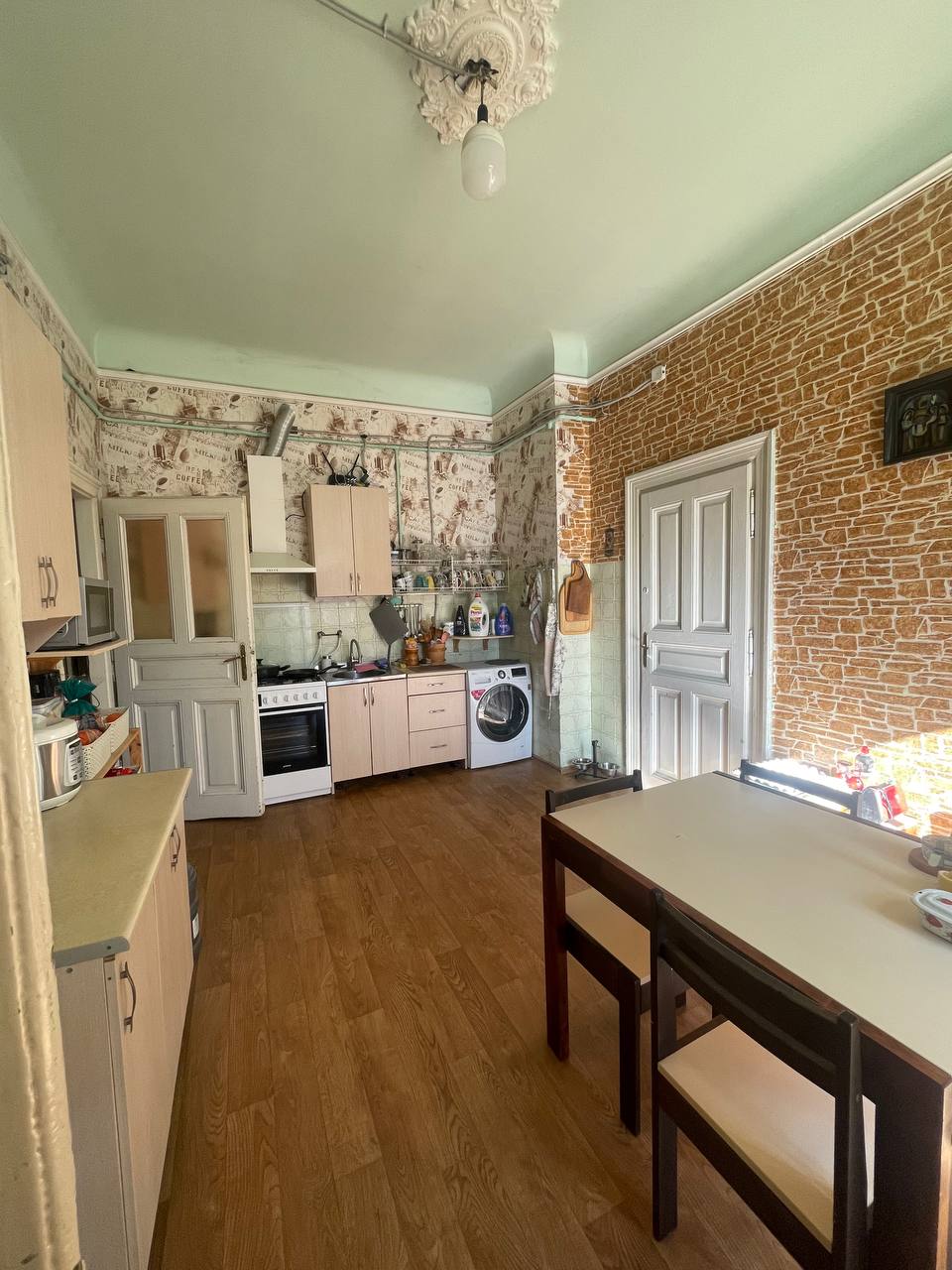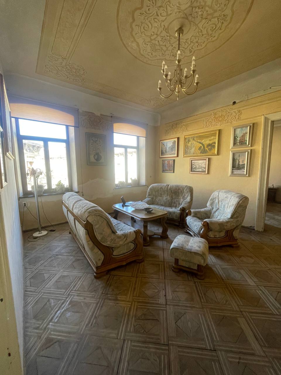 Площа 115.4 кв.м., 3/3 пов. Квартира двостороння, дуже світла та простора, з правильним і функціональним плануванням. Знаходиться у добротному будинку із залізобетонним перекриттям та гарним доглянутим під’їздом із розписом стелі, що підкреслює історичний характер будинку.