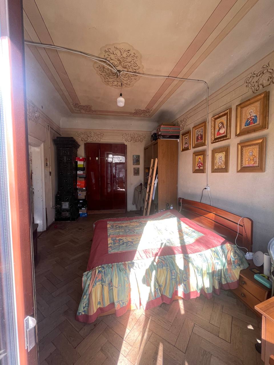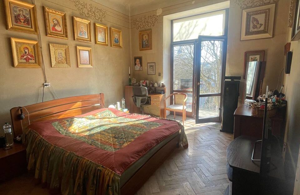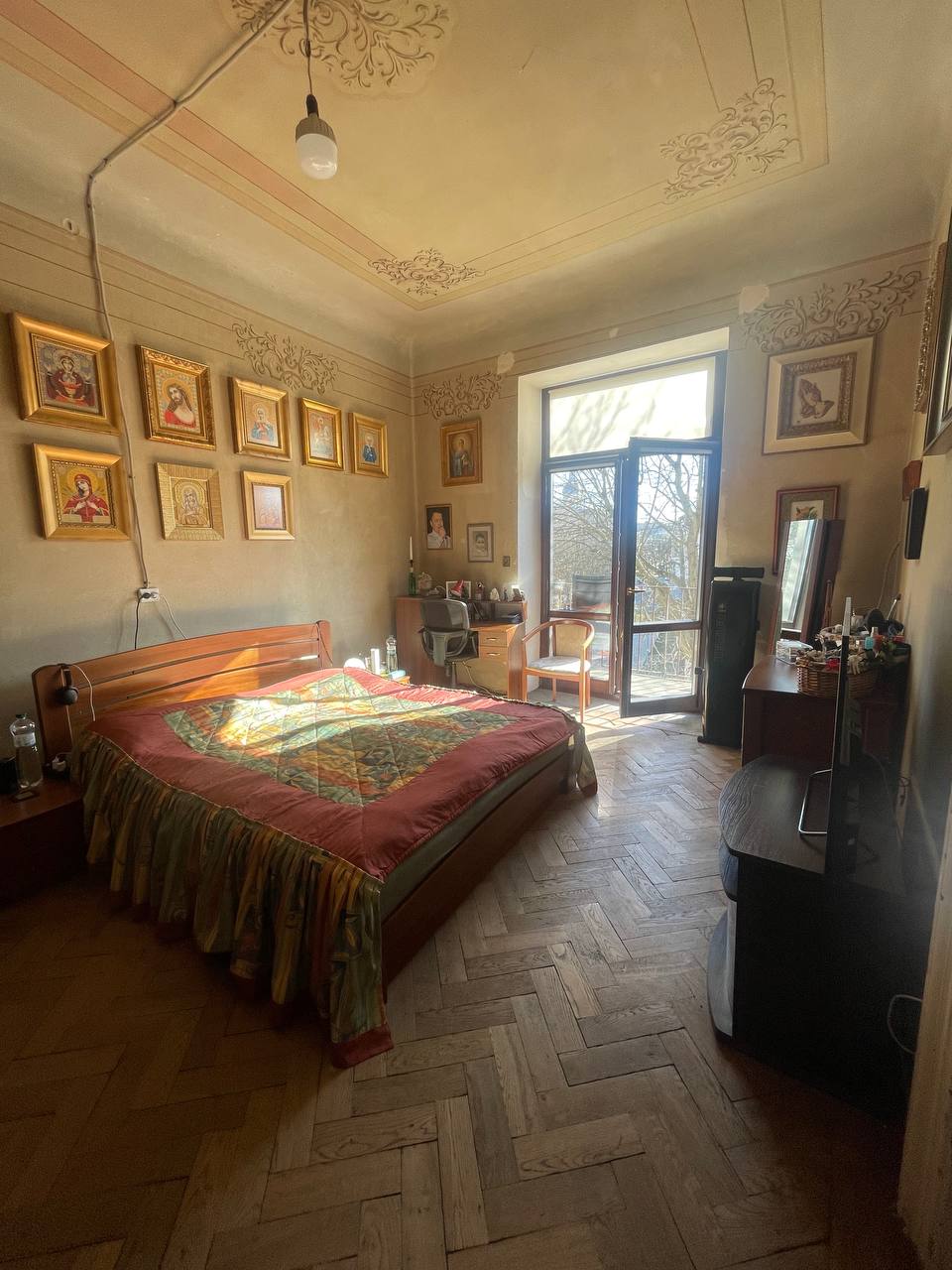 Три ізольовані кімнати, простора прохідна вітальня, велика кухня, коридор, роздільний санвузол, кладова та великий балкон. У квартирі високі стелі, що додає відчуття простору та світла. Збережено оригінальний дерев’яний паркет.
