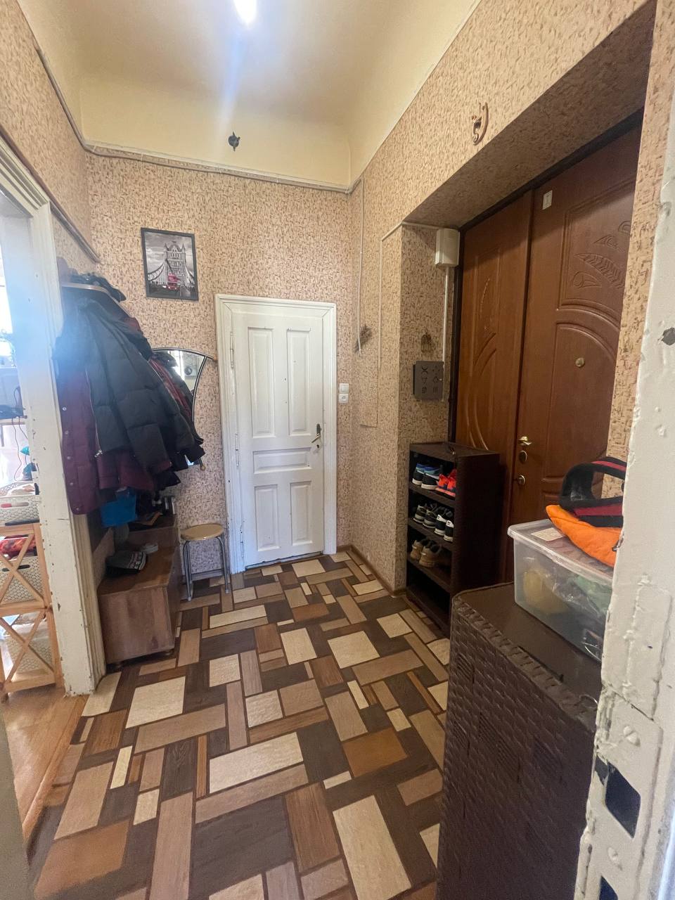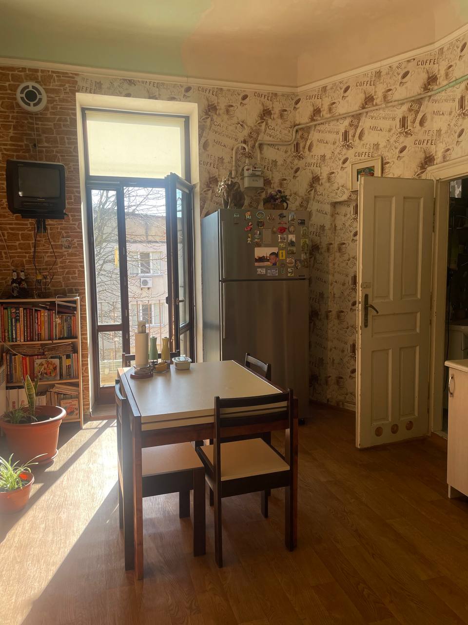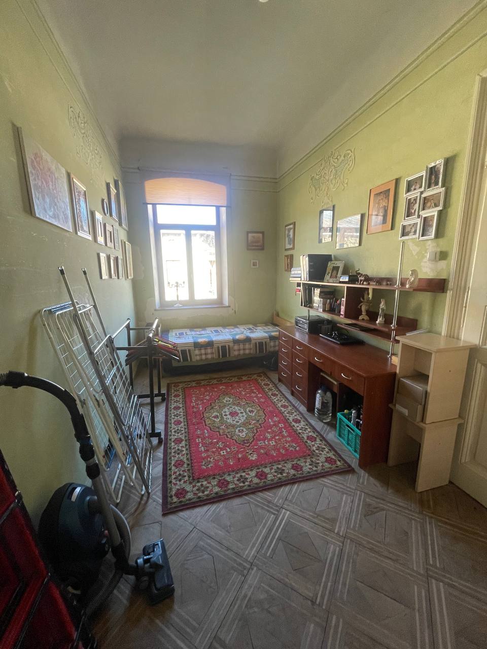 Три ізольовані кімнати, простора прохідна вітальня, велика кухня, коридор, роздільний санвузол, кладова та великий балкон. У квартирі високі стелі, що додає відчуття простору та світла. Збережено оригінальний дерев’яний паркет.